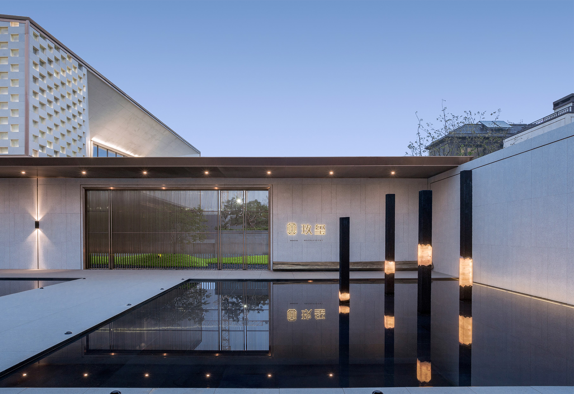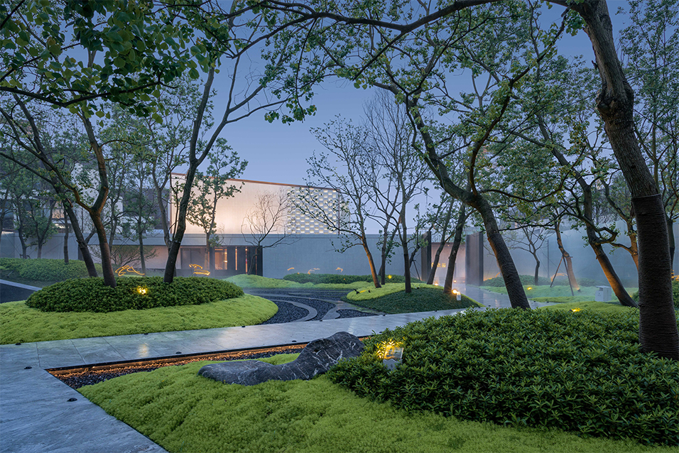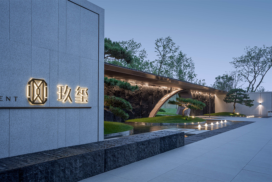 上海玖玺项目设计源起东方文化传承,强调多重院落的礼序层级,通过肌理、文脉、自然充分诠释风华系意致东方、情致现代的产品特征。示范区通过三进院落打造序列感空间结构,选取三个自然元素-林,水,山作为示范区打造的主旨,结合东方造园手法形成不同的场景体验,通过无界之林-前场水院-下沉庭院营造出一种隐逸的场所感。建筑立面结合江南民居气质进行现代演绎,光与影、虚与实。示范区在2020年完美呈现,斩获2020年克而瑞全国十大品质作品,匠心打磨,呈现出一种自然之下的东方风华意境。